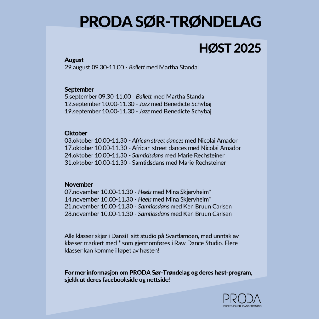 For mer informasjon og timeplan sjekk ut PRODA Sør-Trøndelag på facebook, instagram eller via deres nettside.